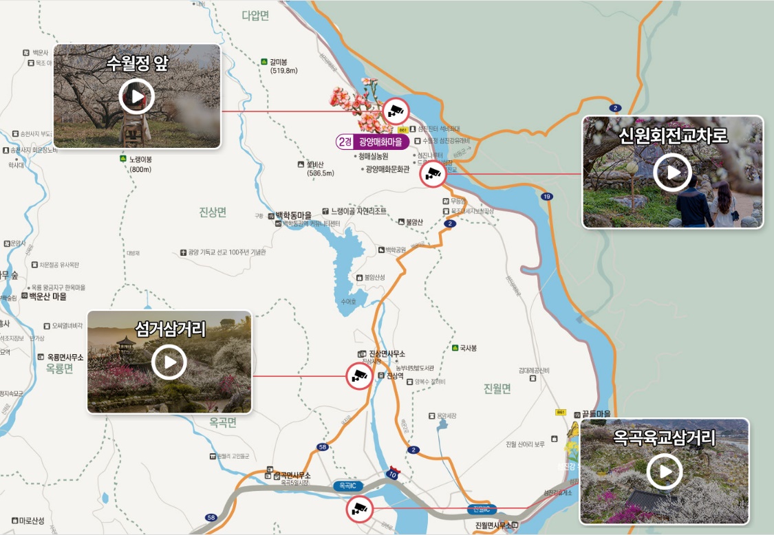 * 광양 매화축제 주차장의 실시간 CCTV 화면입니다. 방문 당일 CCTV를 확인하고 덜 붐비는 곳으로 가시면 됩니다.